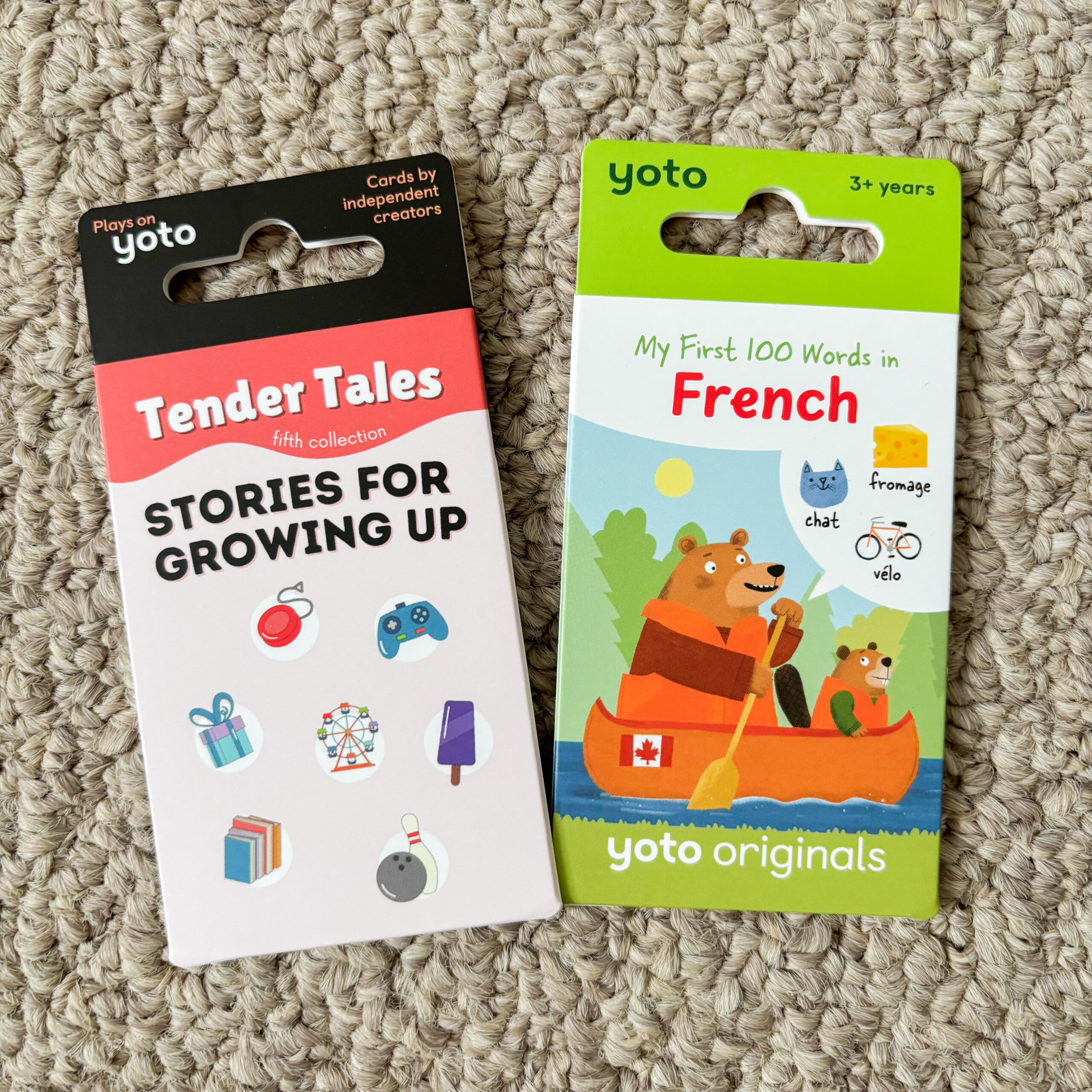 Another fan favourite in our house—our Yoto is on constantly, so naturally we added to our card collection. He loves the Tender Tales, and with French school starting in the fall, this one felt like a great addition.