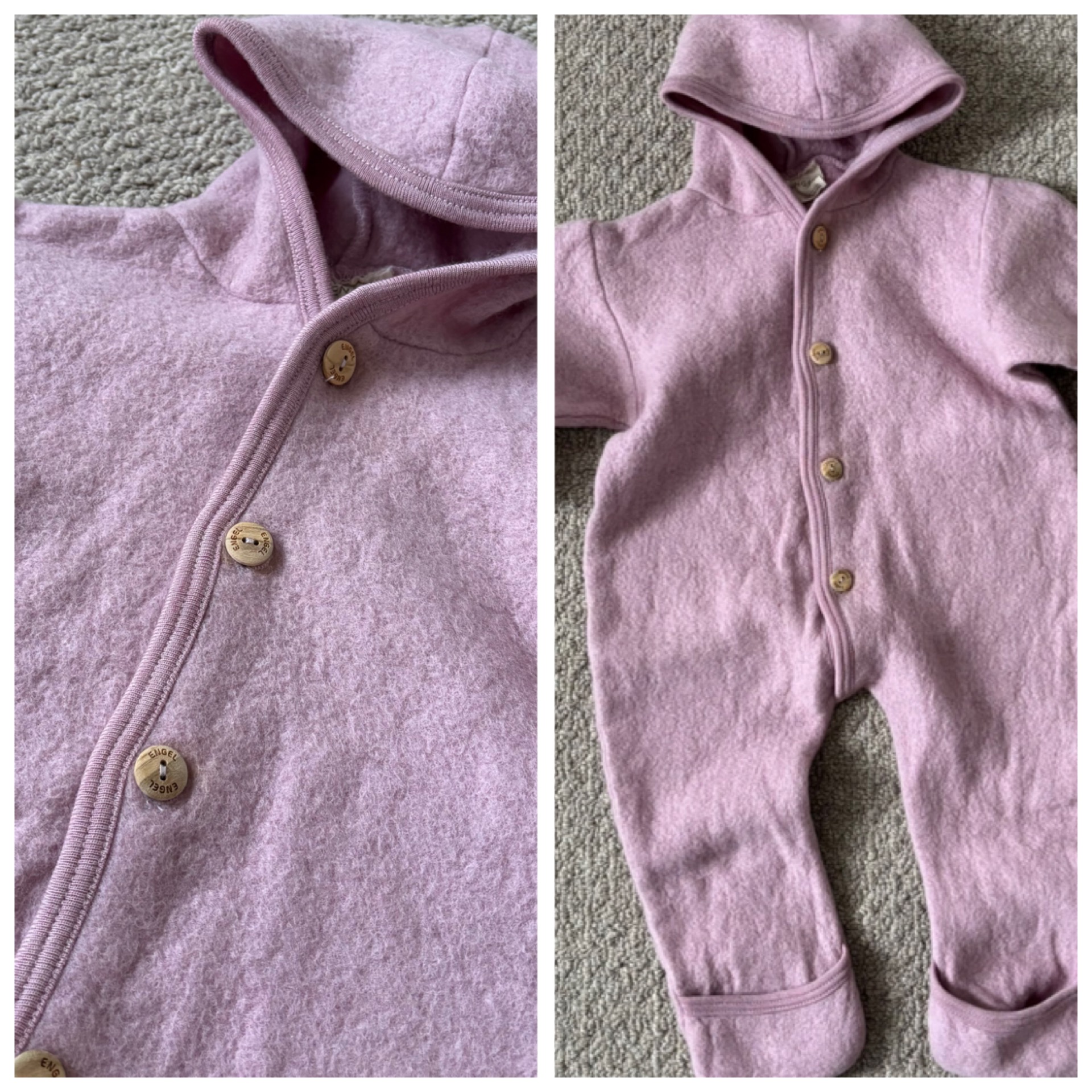 This Engel bunting suit I found secondhand. It’s made of soft merino wool—perfect for both spring and fall, and something she’ll get so much use out of.